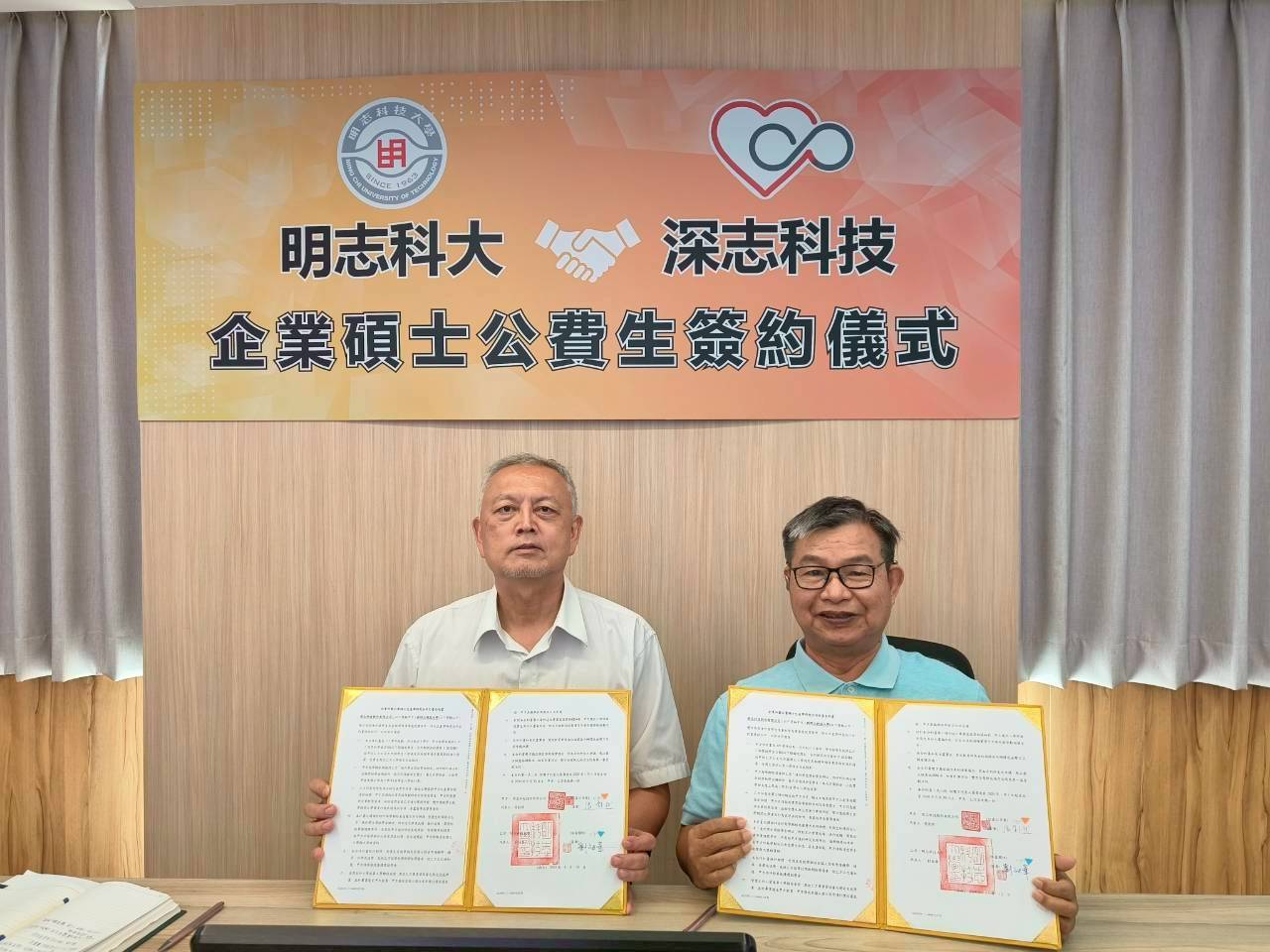 114年8月12日 明志科技大學劉祖華校長與本校衍生企業——深志科技股份有限公司張創然董事長,正式簽署「企業碩士公費生合作計畫」!